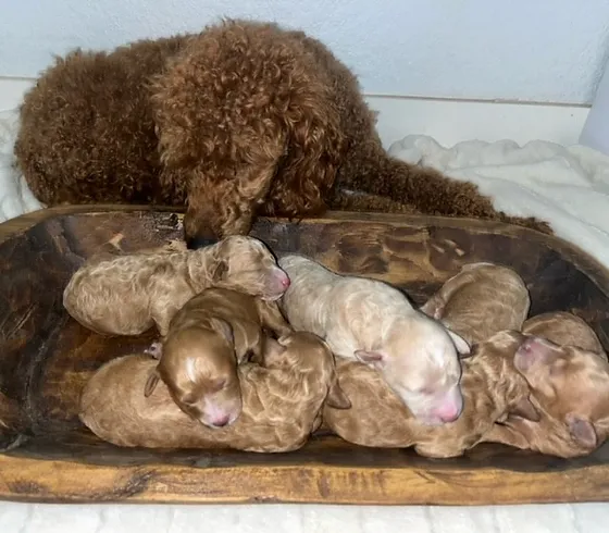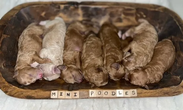Our AKC-registered miniature poodle puppies are raised with love in our family home, ensuring a healthy and well-socialized start for your new companion.